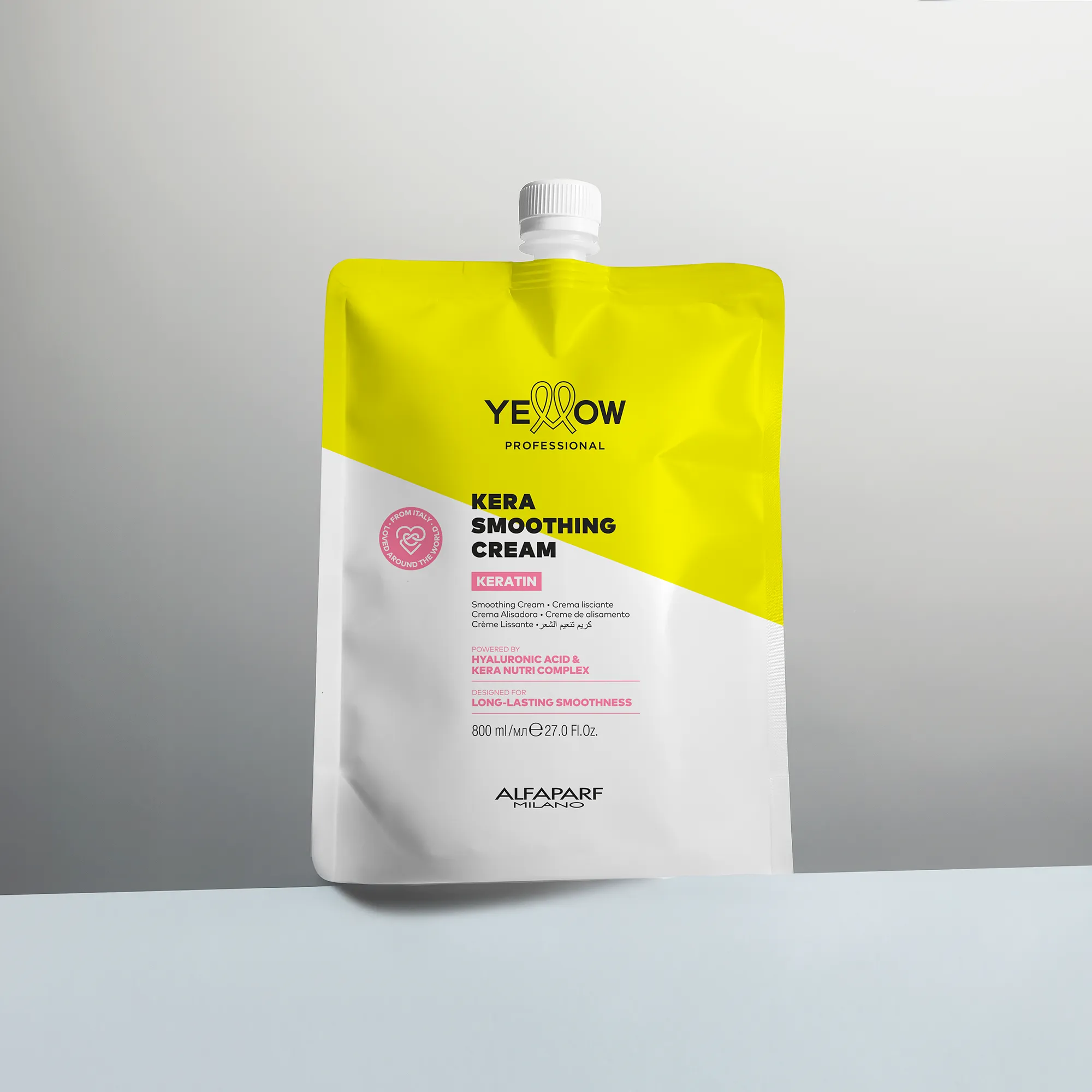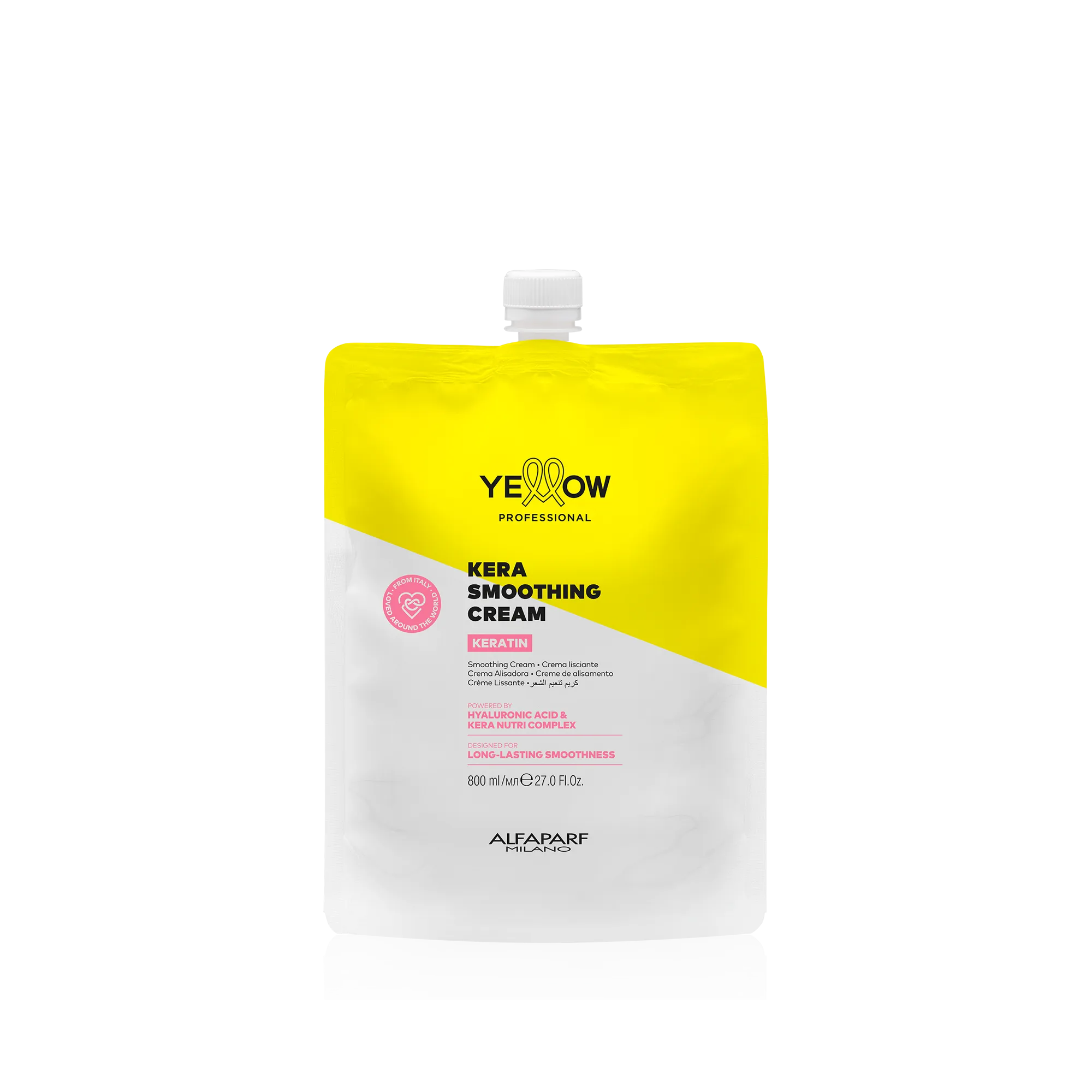 *Test strumentale condotto su capelli trattati con servizio Yellow Professional Kera Smoothing Treatment (Yellow Professional Kera Smoothing Cream, Yellow Professional Smoothing Shampoo e Yellow Professional Smoothing Mask) a confronto con capelli non trattati.